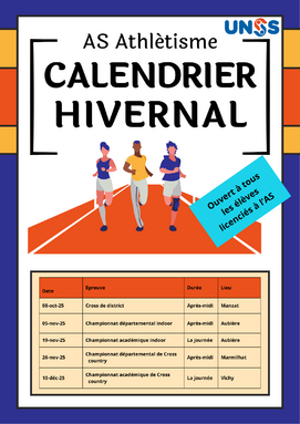Calendrier des compétitions hivernales d'athlétisme - 2025/2026